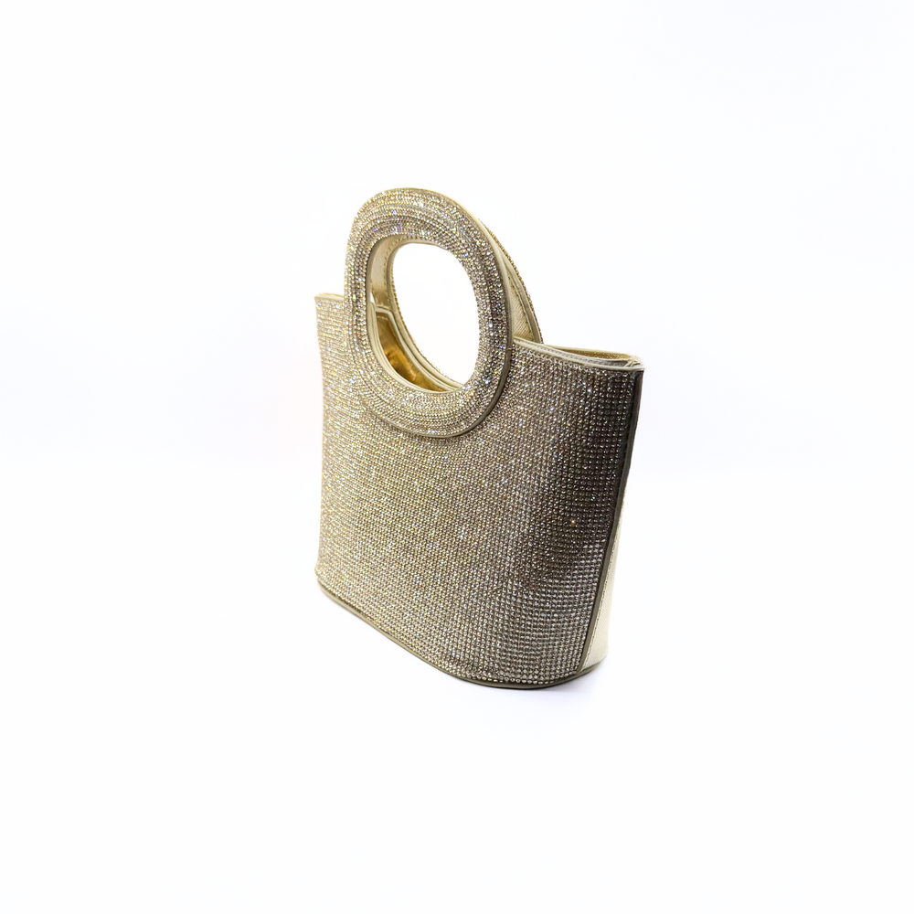 Mini Cartera de Fiesta Brillante Con Manilla Dora