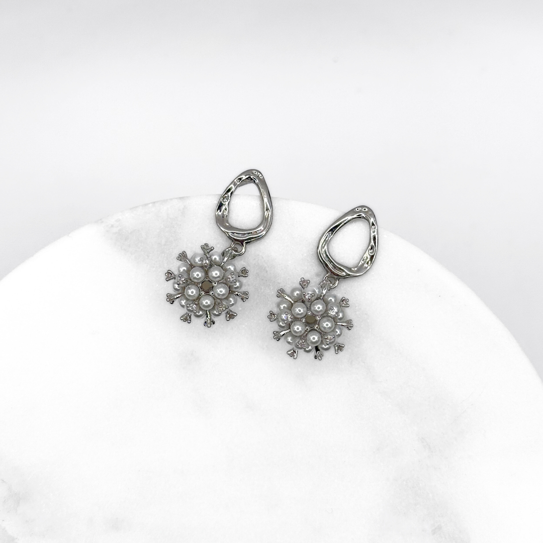 Aros Colgantes Diseño Perlitas en Fantasía Plata