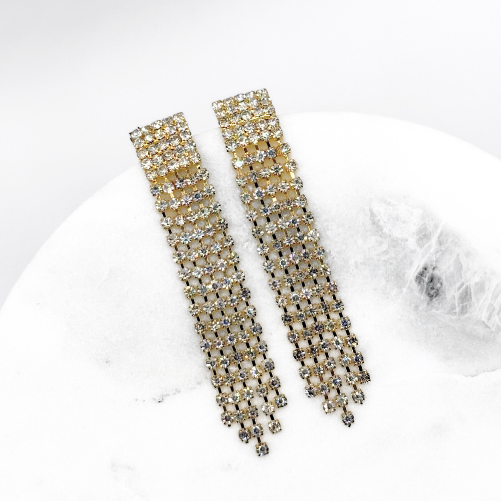 Aros De Fiesta Fantasía Colgantes Strass Dorado