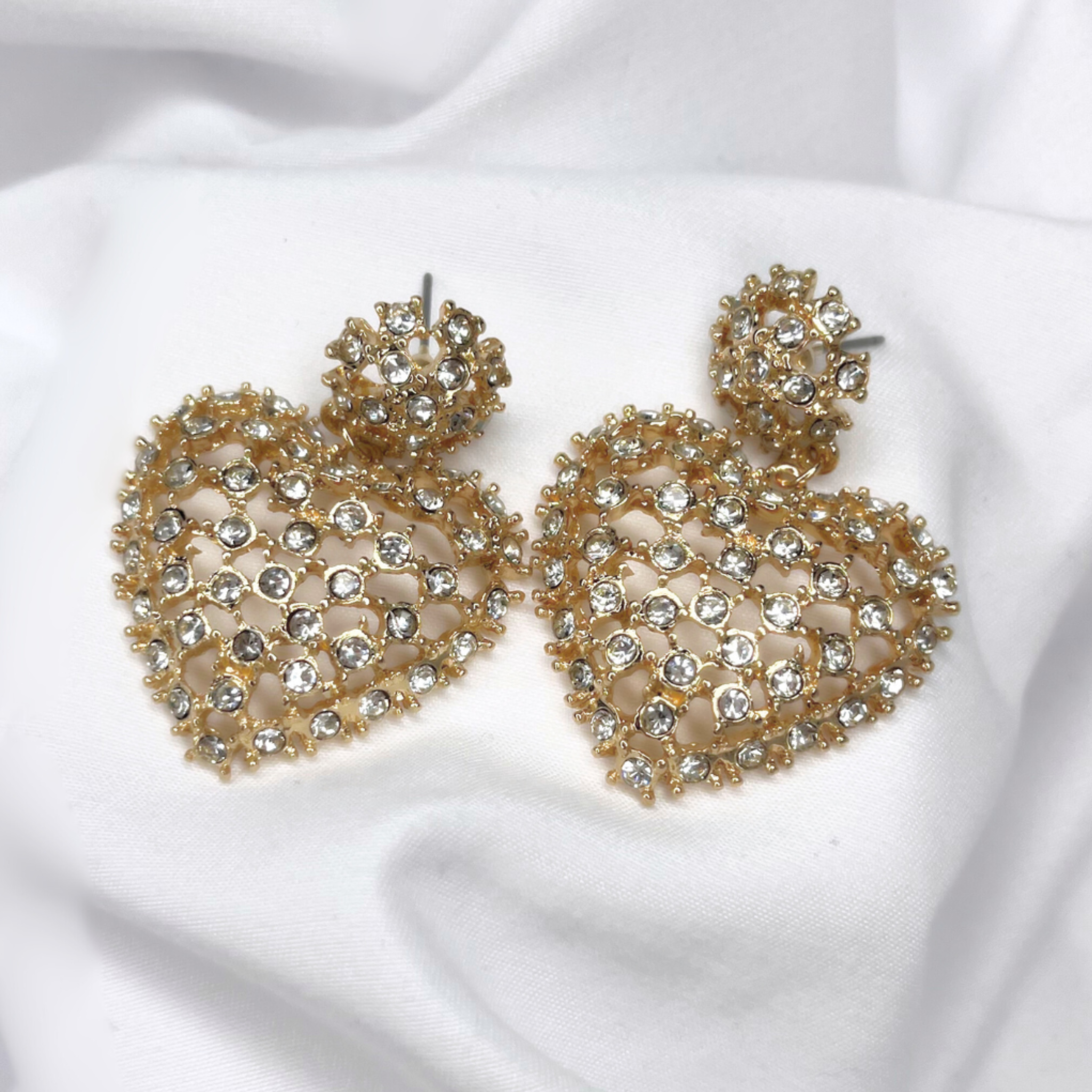 Su estructura dorada en forma de corazón y strass brillantes incrustado en un patrón de rejilla les da un aspecto sofisticado y glamuroso. Perfectos para añadir un toque de glamour a cualquier look.