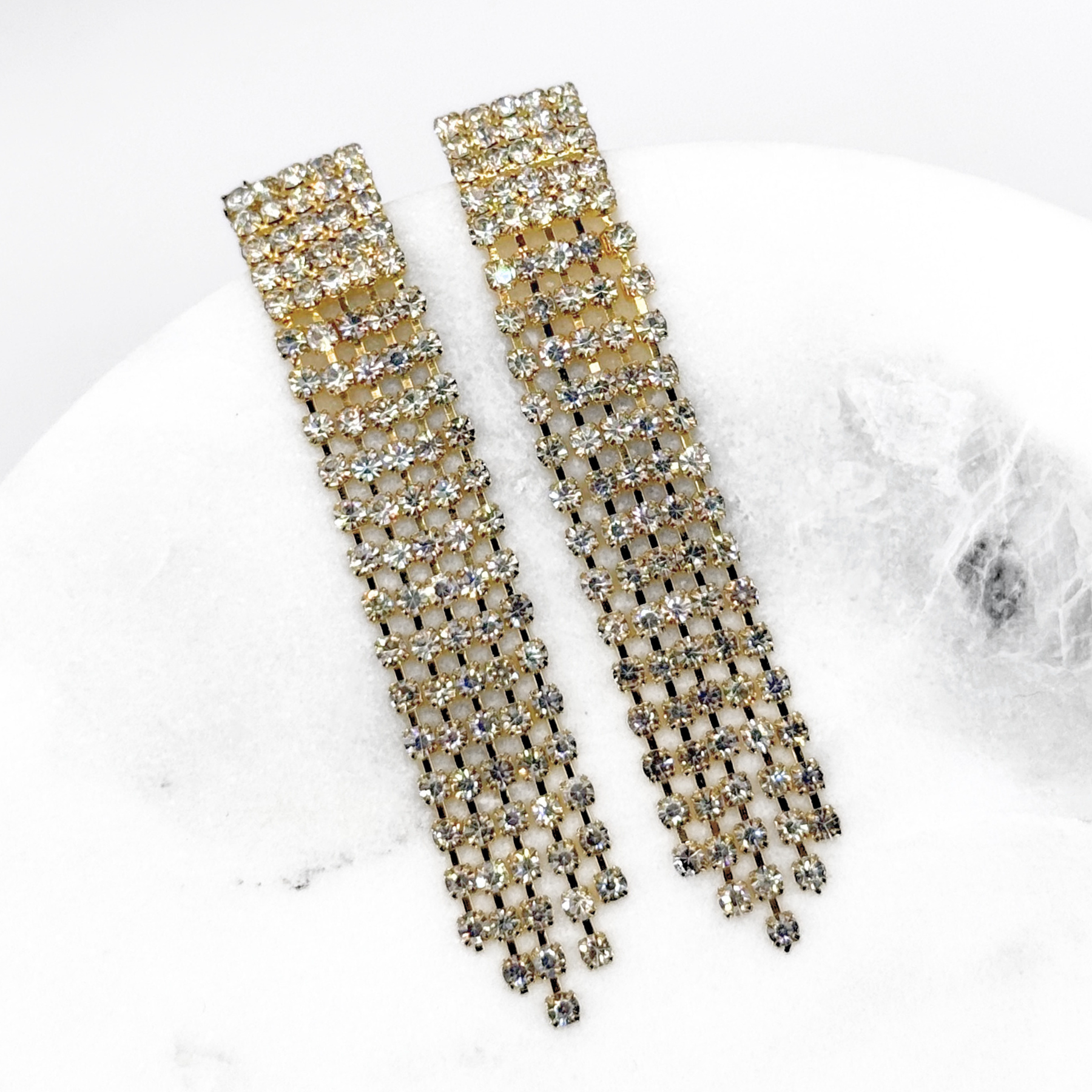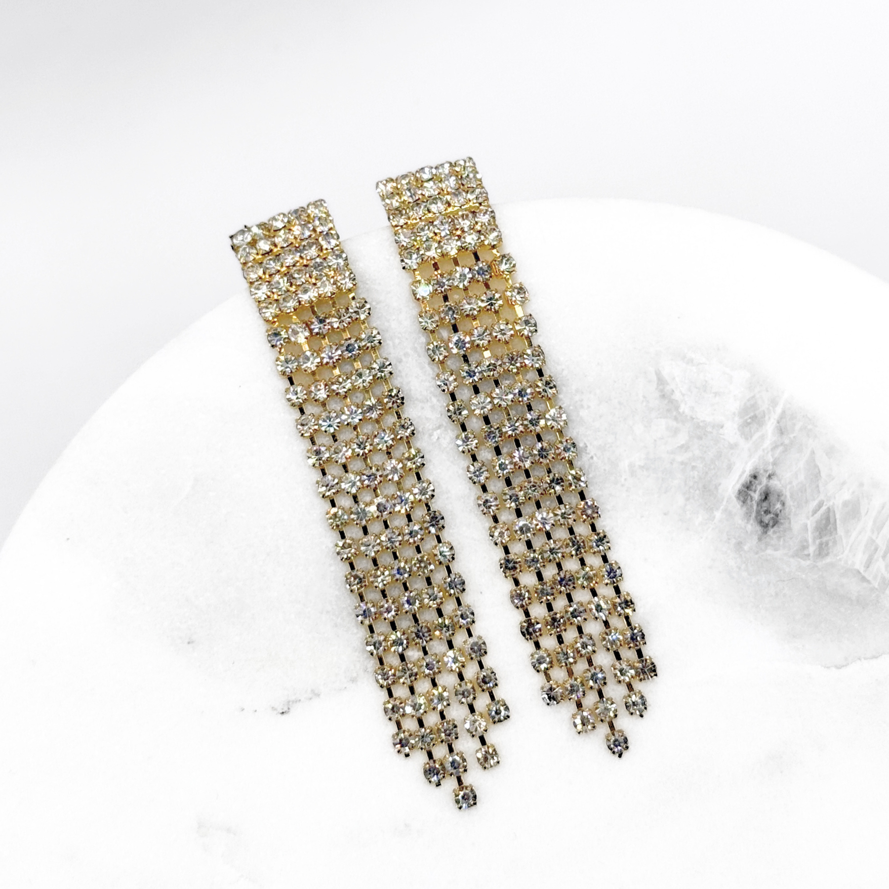 Aros De Fiesta Fantasía Colgantes Strass Dorado