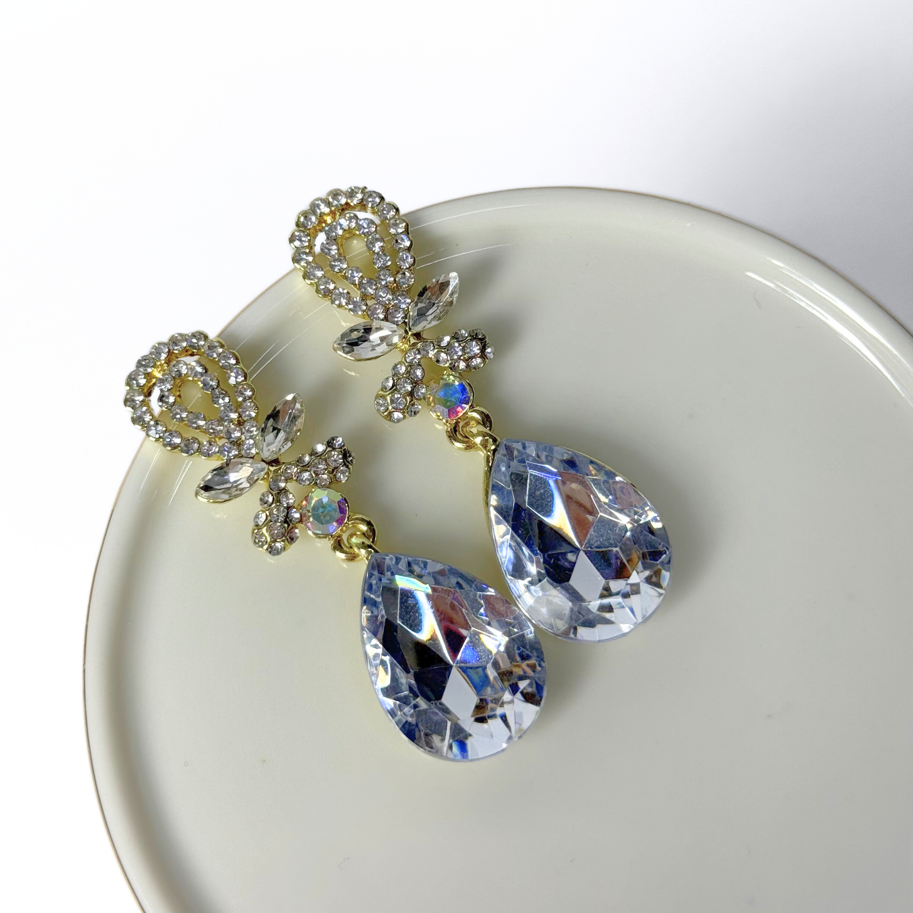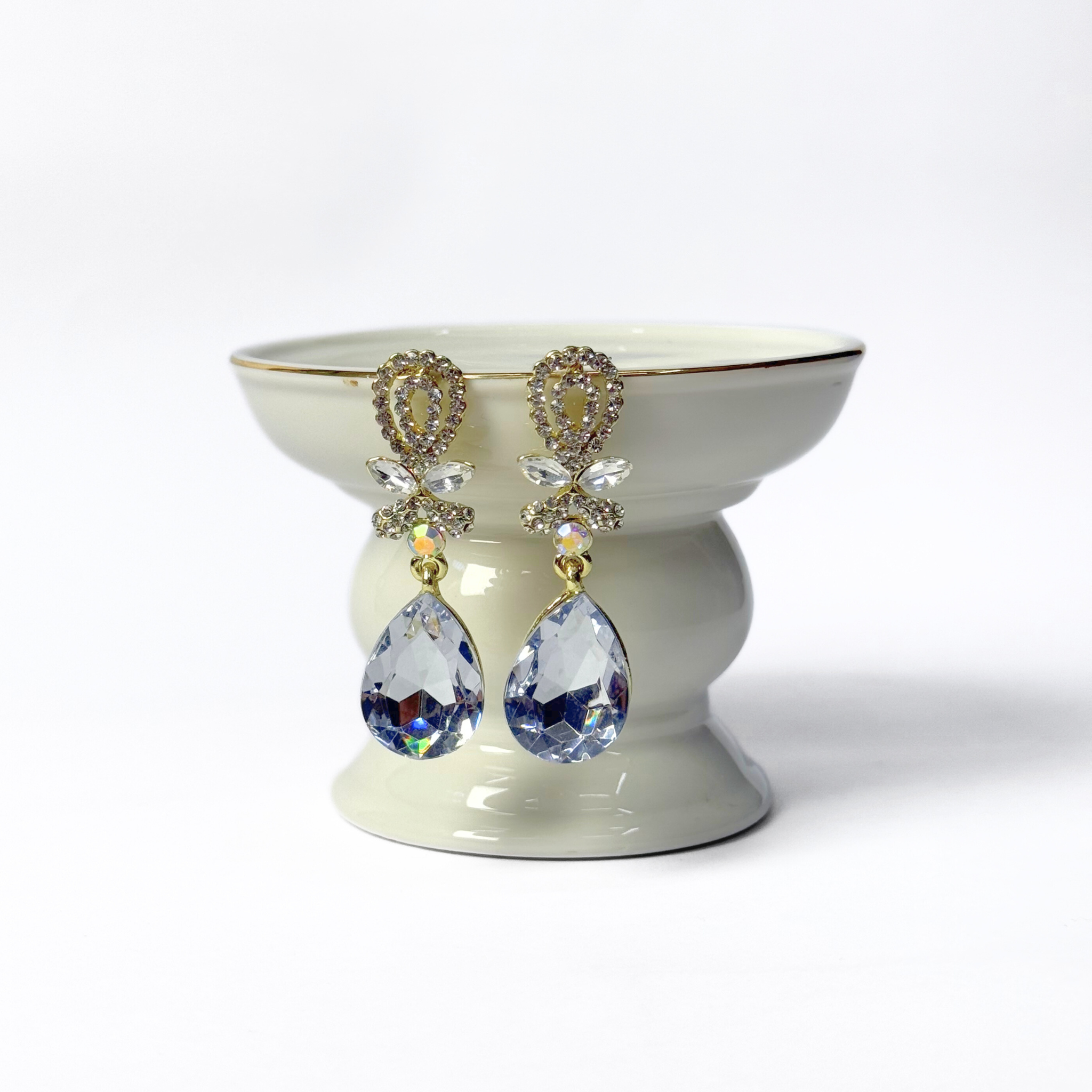 Aros de diseño elegante con forma de lágrima en plateado, realzados con detalles en dorado que añaden sofisticación.