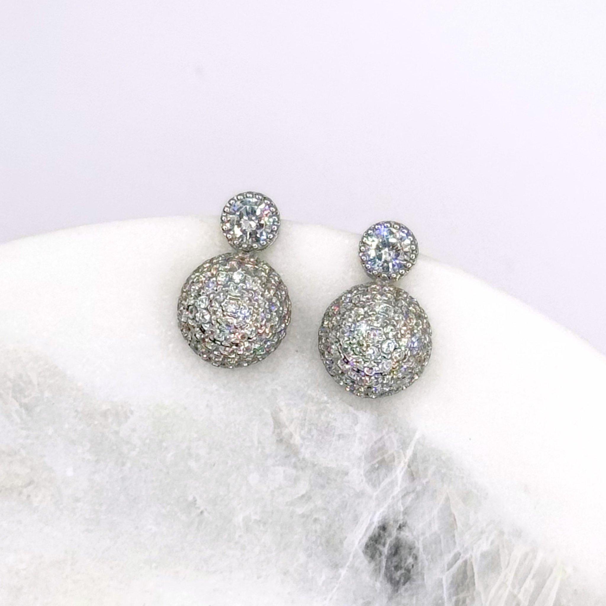 Estos aros son los indicados para complementar un look de fiesta más elegante y minimalista. Con su diseño de Circón strass y finalización perlas con detalles en strass en color plateado.