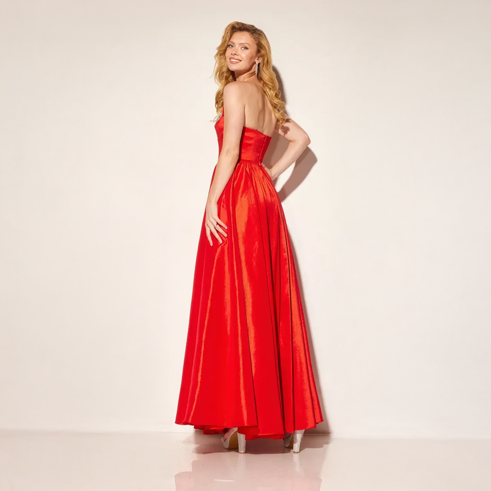 Vestido de Fiesta Strapless Strass Cote Rojo