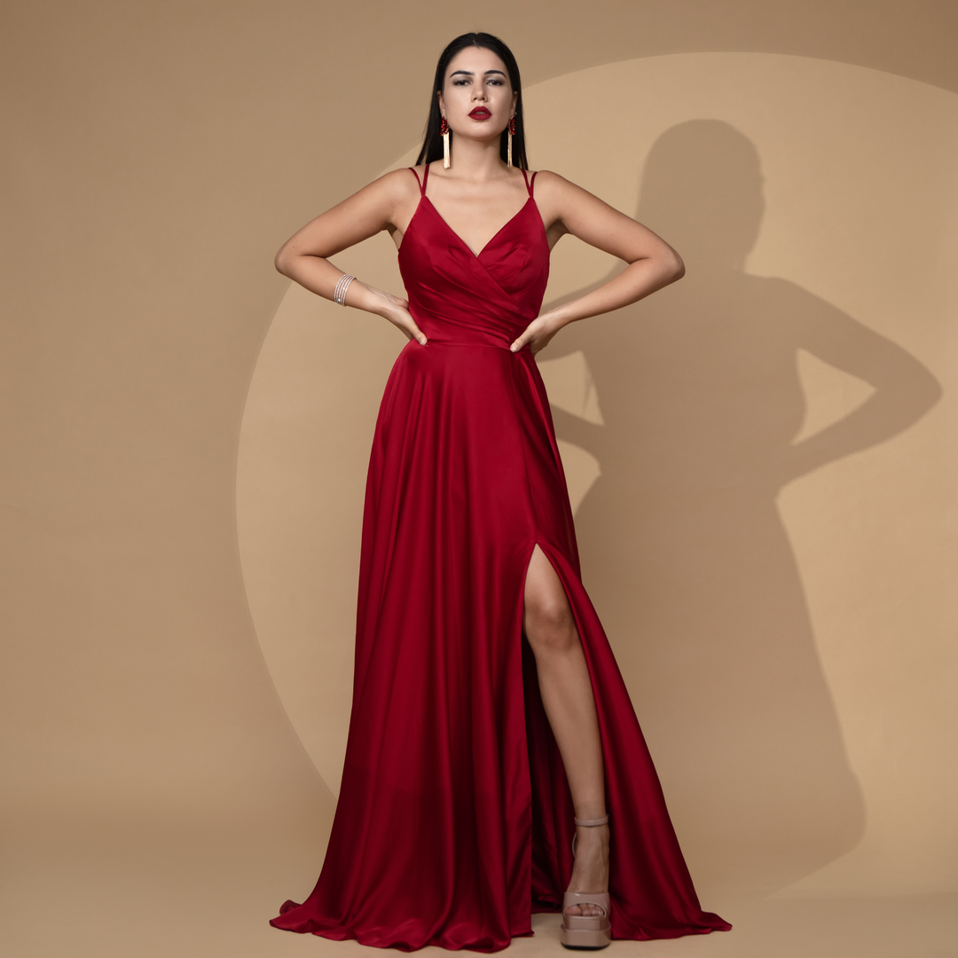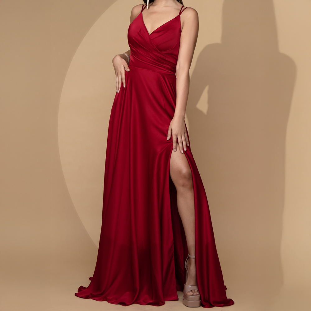 Vestido De Fiesta Corset Satín EC0130 Borgoña