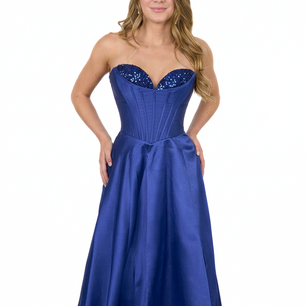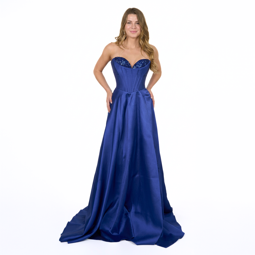 Vestido Largo de Fiesta Asimétrico Isis Azul Royal