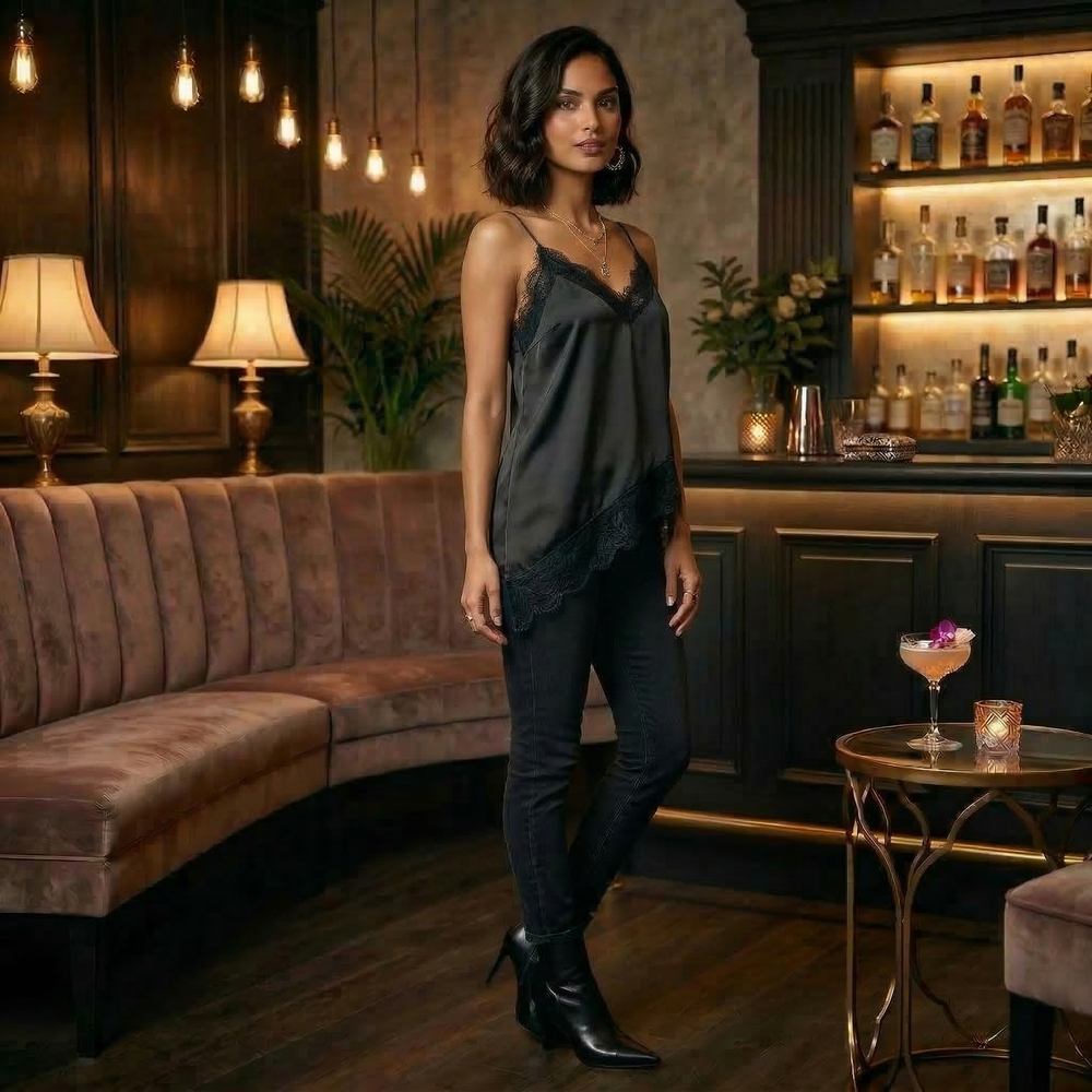 Vestido corto de fiesta con tirantes lazo y falda evasé Alex