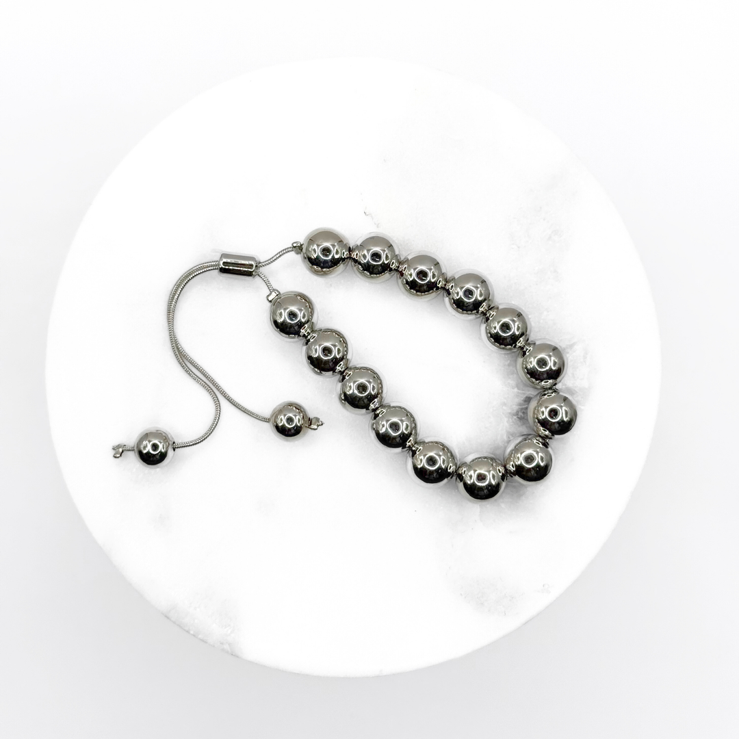 Pulsera Ajustable Perlas En Fantasía Plateada