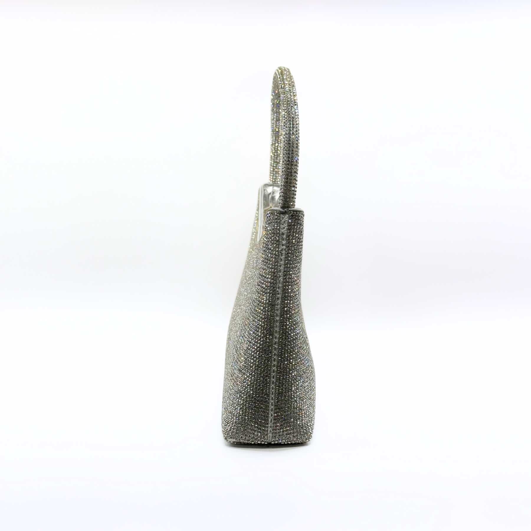 Cartera de fiesta plateada con detalles brillantes es ideal para ocasiones elegantes y sofisticadas.