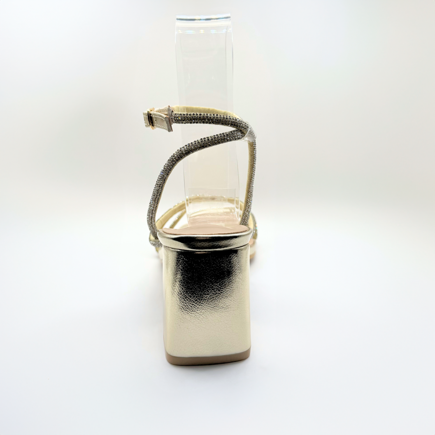 Brilla en cada ocasión con estas sandalias de fiesta doradas de Emma Clara. Su diseño con straps finas cruzadas y tacón ancho de altura media ofrece un equilibrio ideal entre elegancia y comodidad.
