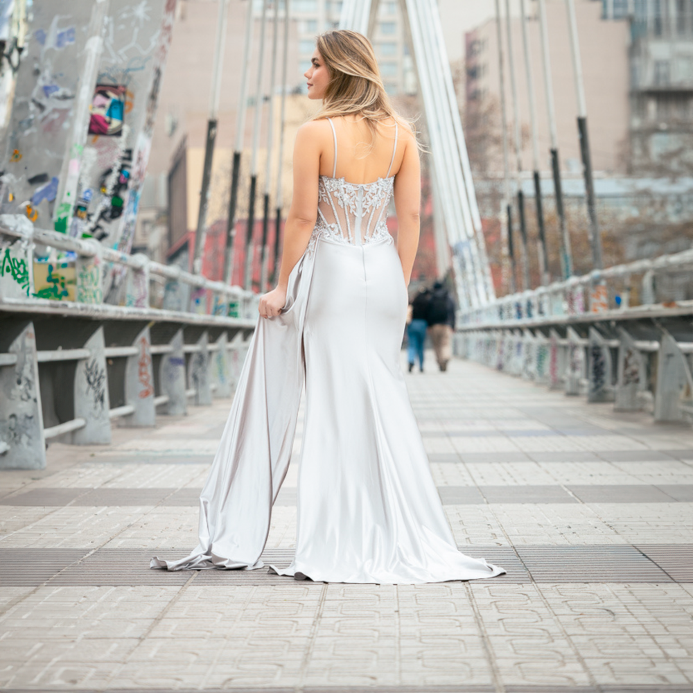 Vestido Princesa Cierre tipo Corset EC0136 Silver