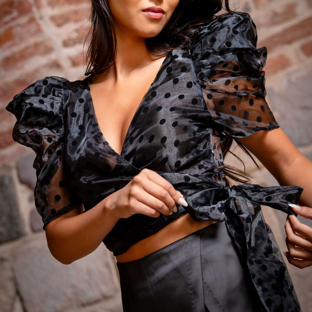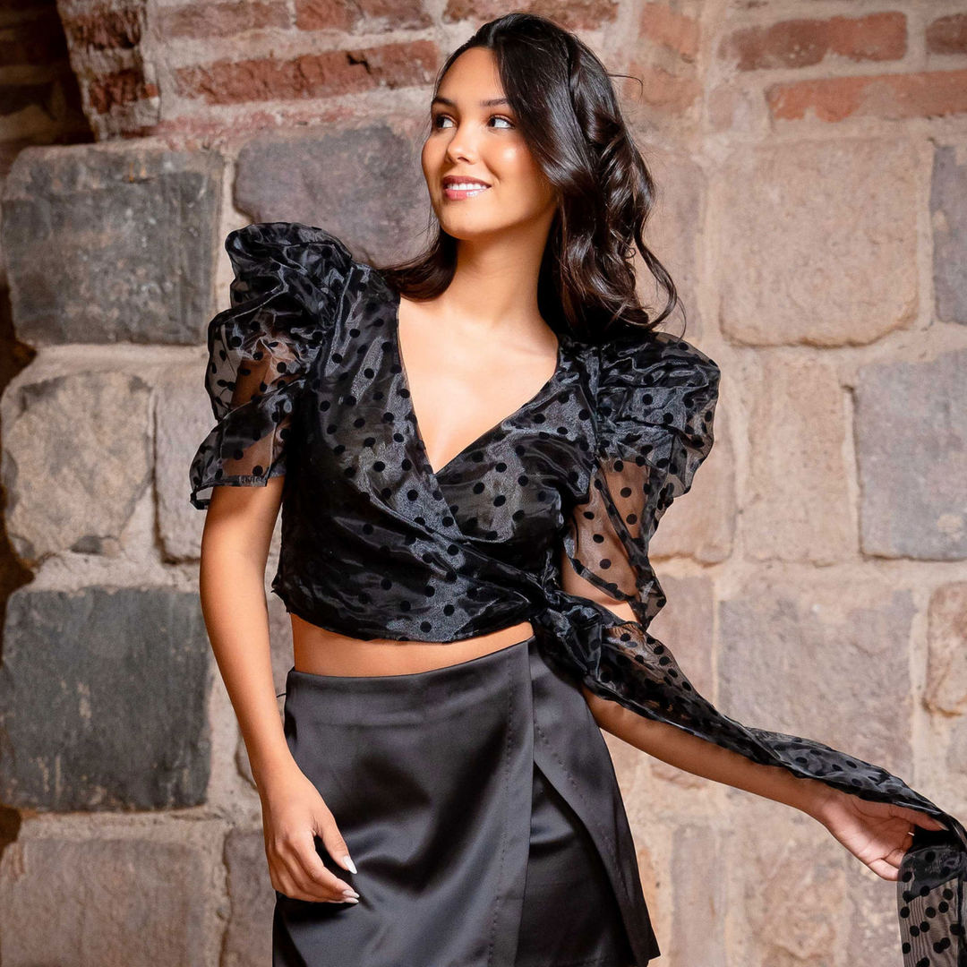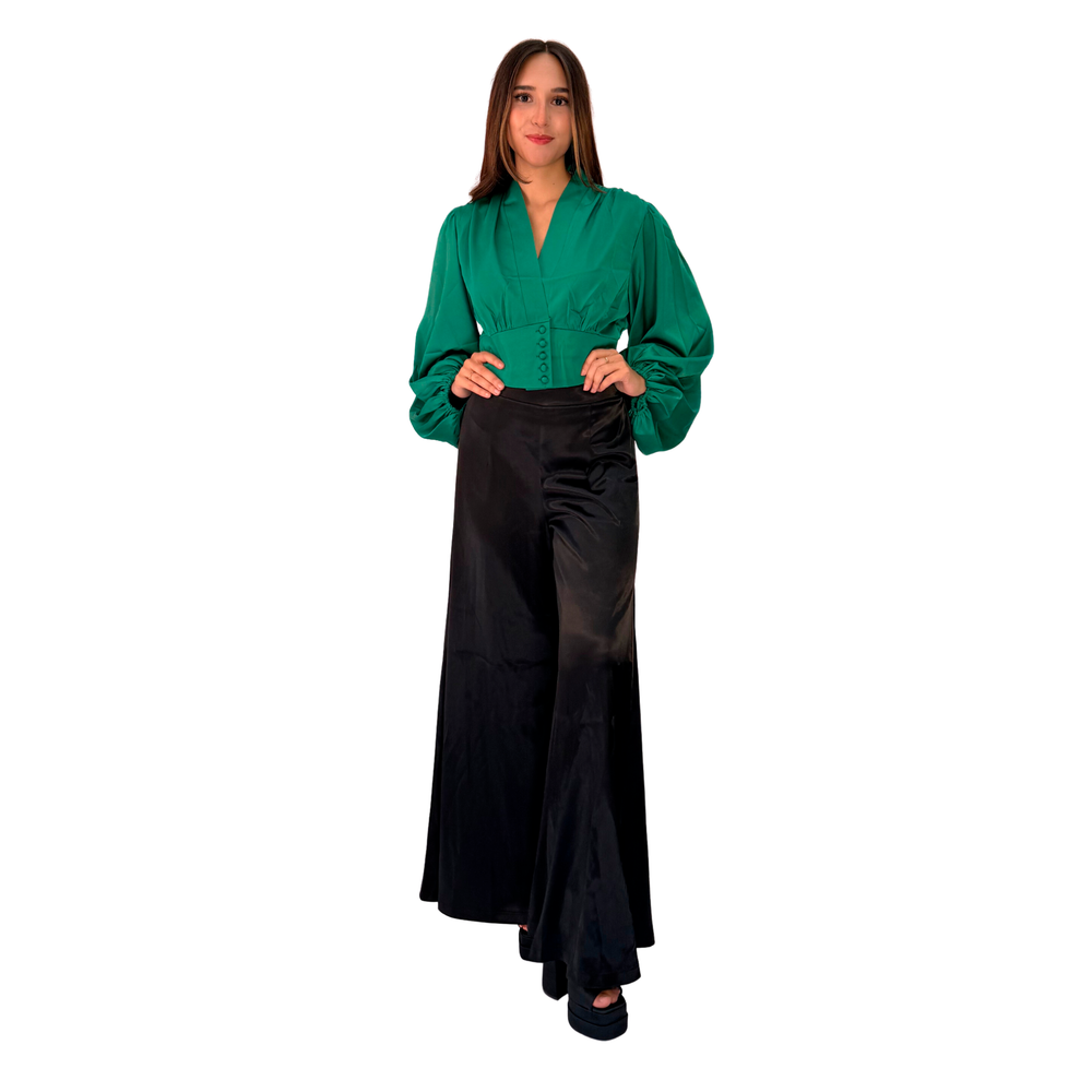 Conjunto Top Lentejuelas y Palazzo Oriana Negro