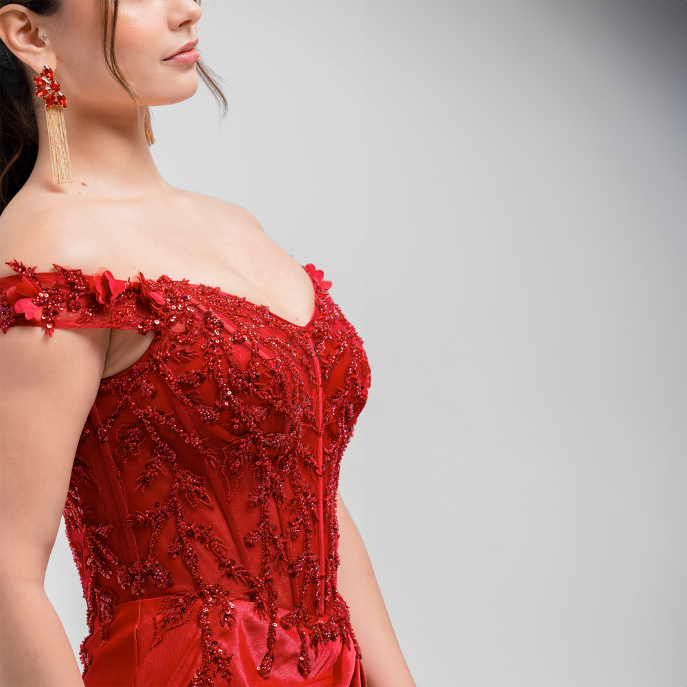 Vestido De Fiesta Corset Bordado EC0160 Borgoña