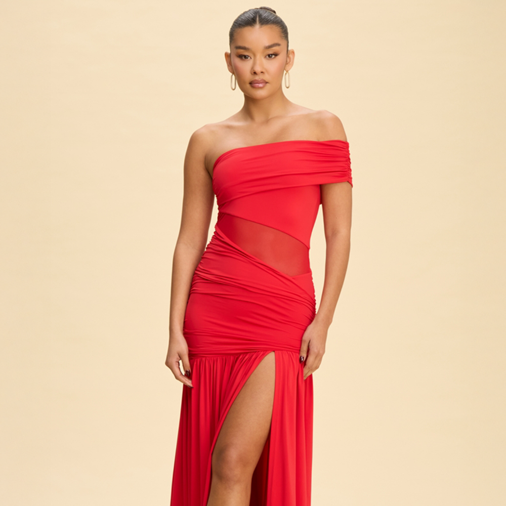 Vestido Ajustado Escote Bardot Frida Borgoña