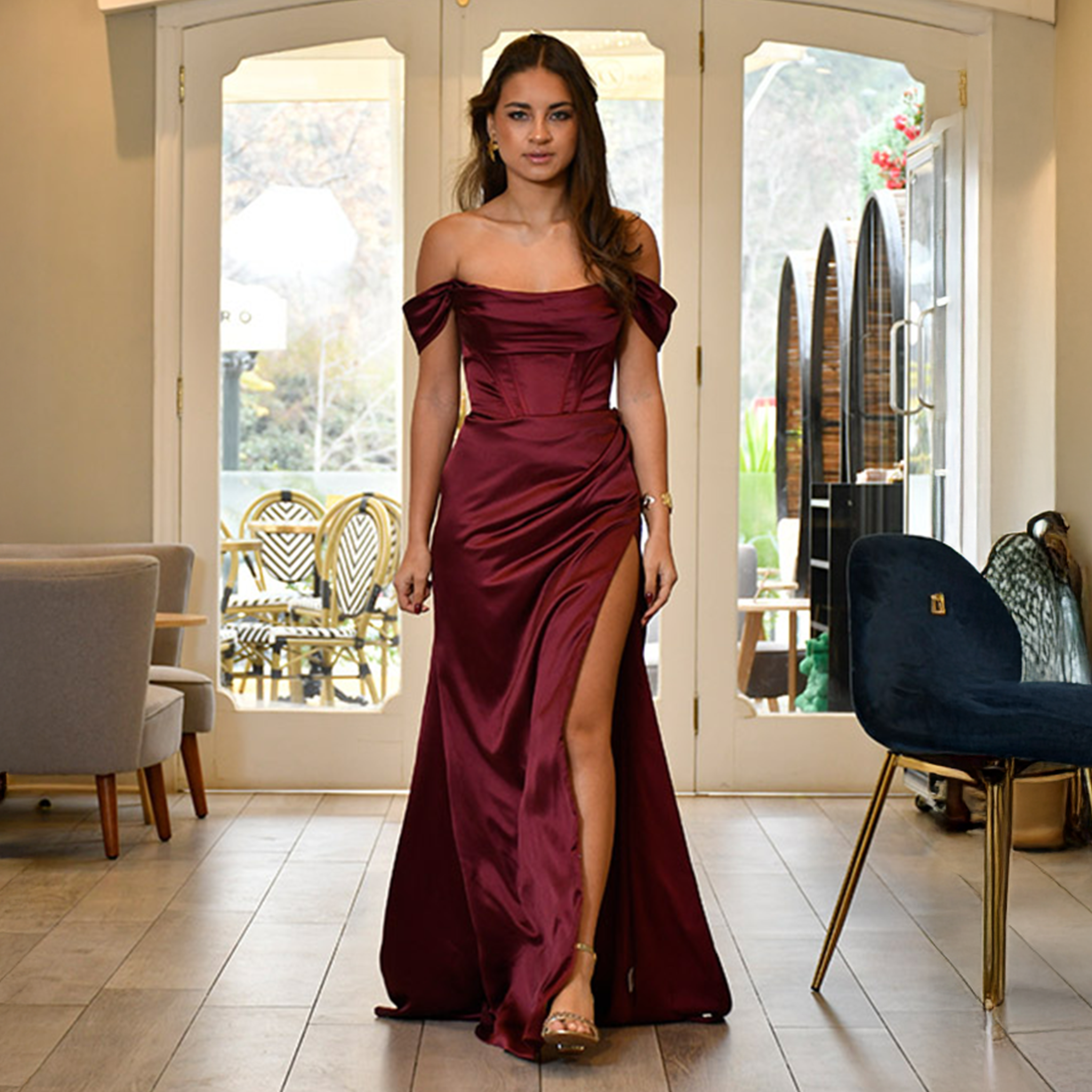 Vestido De Fiesta Corset Satín Amaya Borgoña