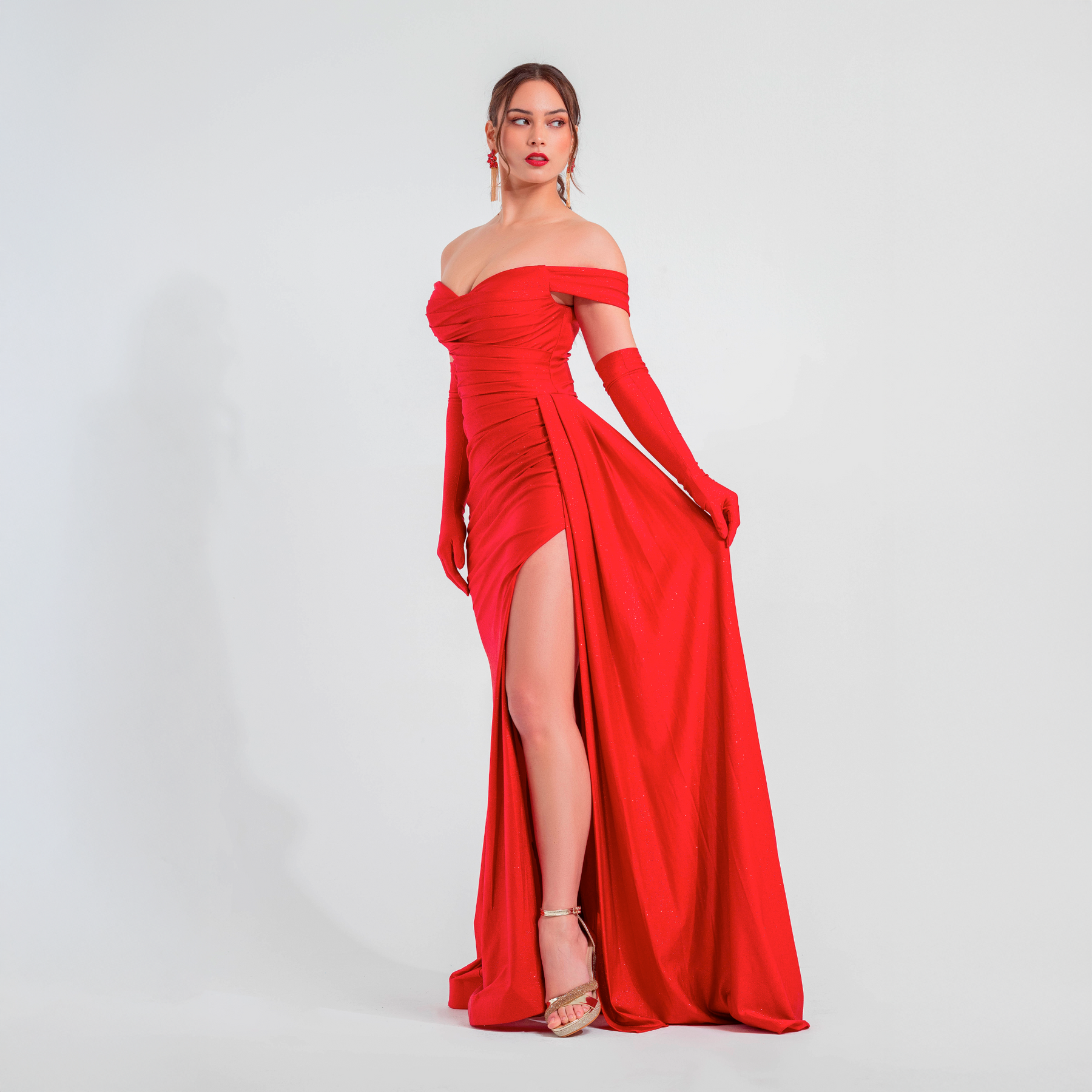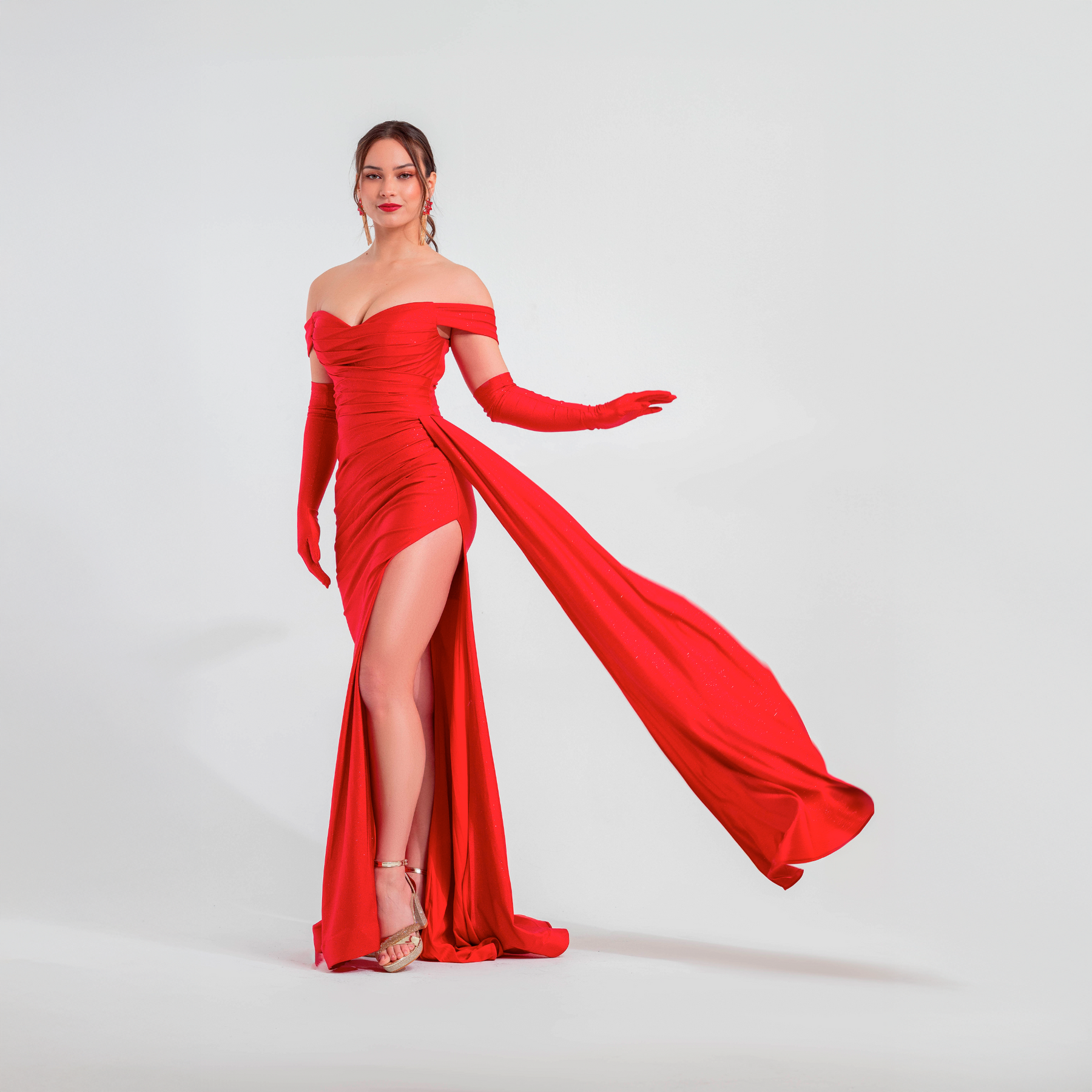 El detalle que lo hace único es el sash lateral fluido con guantes a juego, creando un look impactante y lleno de glamour. Perfecto para galas, graduaciones, matrimonios o eventos especiales, este vestido te hará destacar con estilo y seguridad en cada paso.