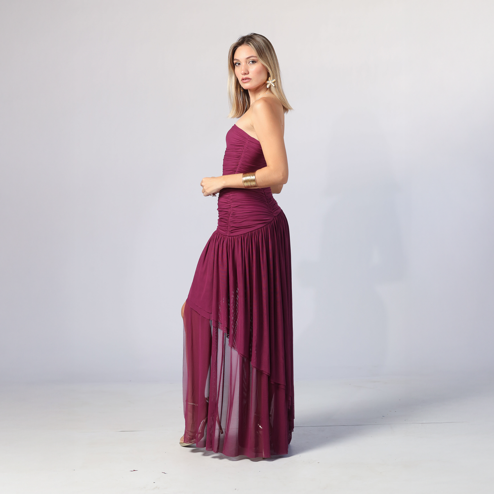 Vestido de Fiesta Strapless Drapeado Eda Rosa Pas