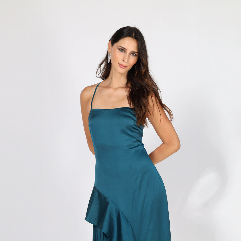 Vestido de Fiesta Plisado Carmen Verde Petróleo