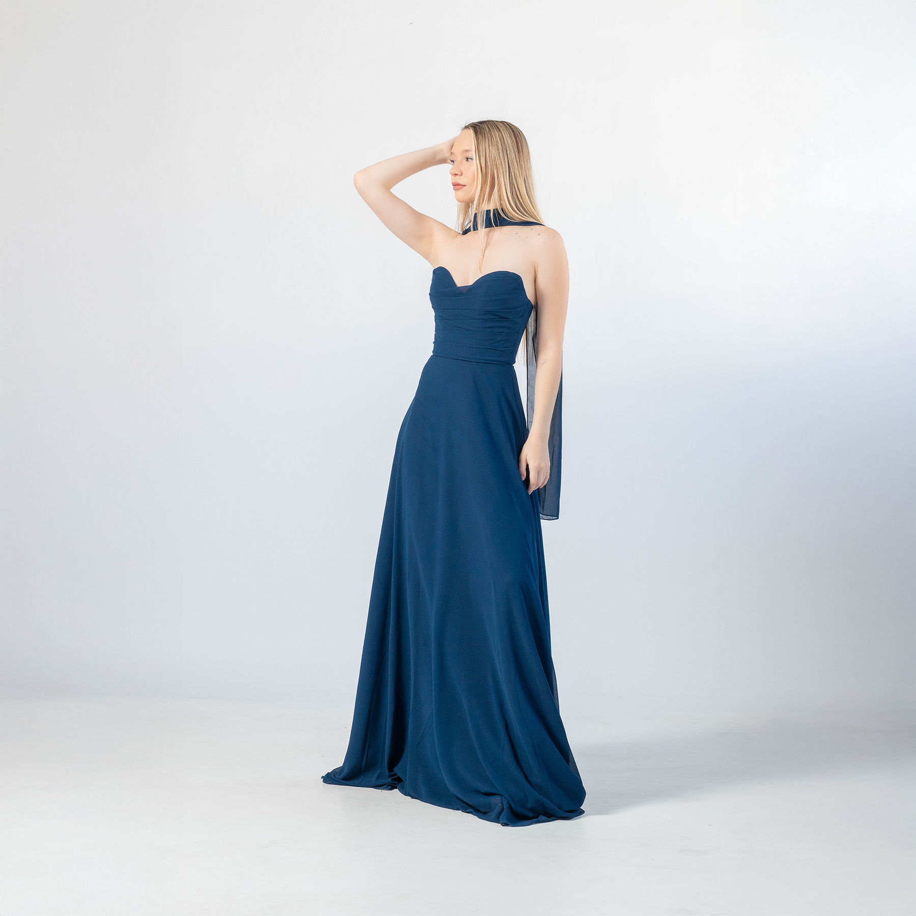 Vestido Largo Gasa Escote Strapless Pauli Azul Na
