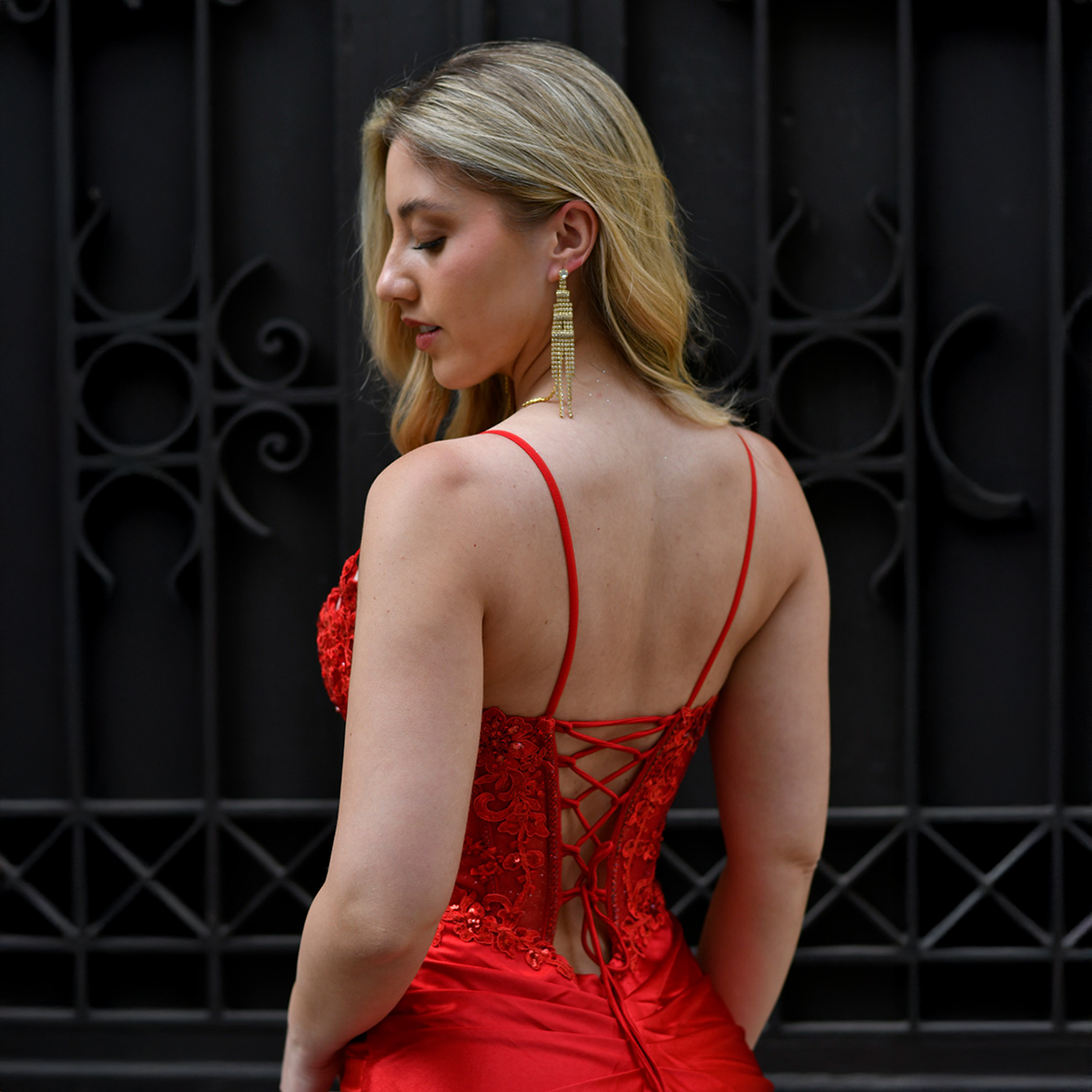 El ajuste tipo corset en la espalda garantiza un calce perfecto y cómodo, moldeando delicadamente el cuerpo. Ideal para galas, graduaciones o matrimonios, este diseño combina sensualidad, modernidad y distinción en una sola prenda.