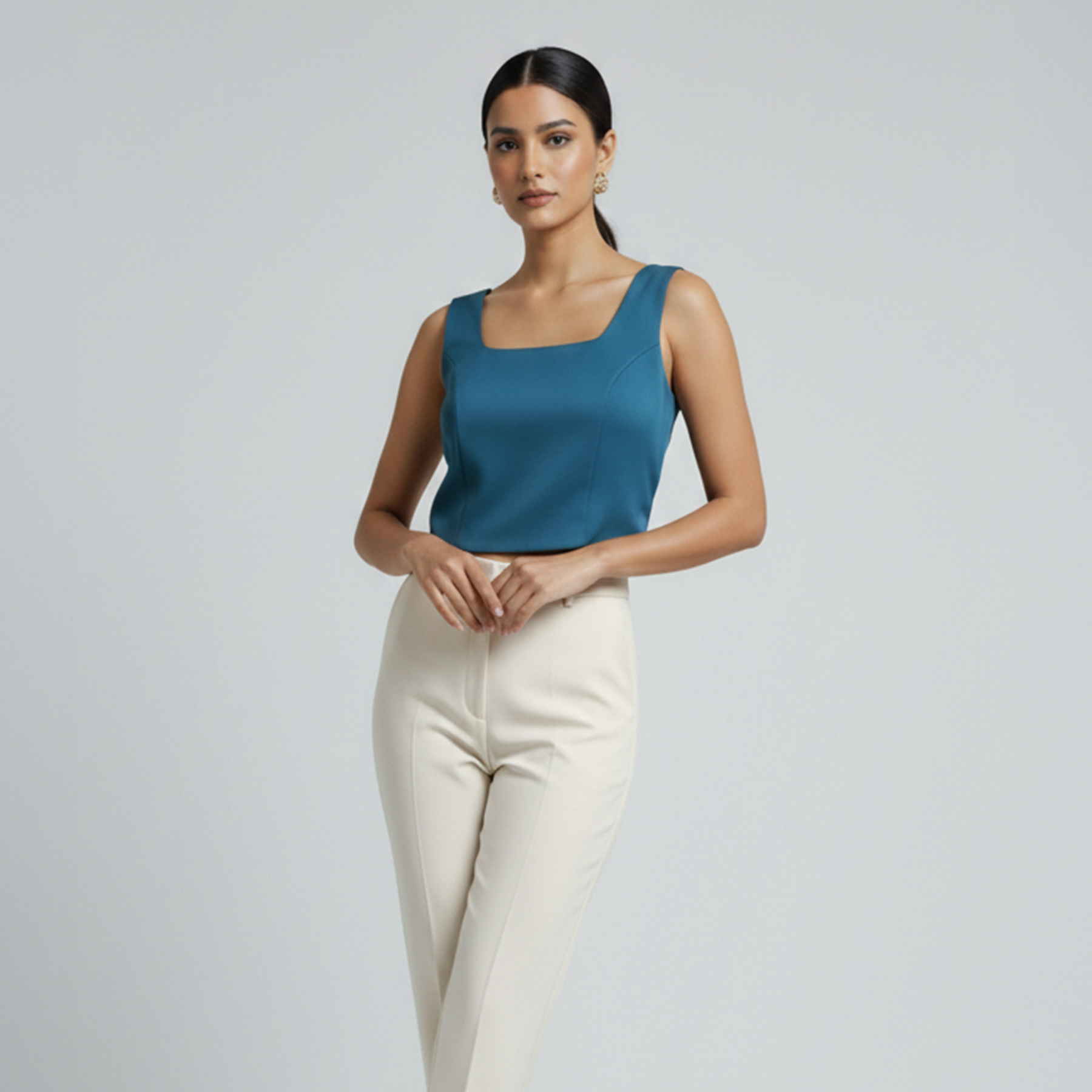 No es la típica blusa que guardas para ocasiones especiales; queda igual de bien en una reunión de trabajo que en una salida de viernes. El largo tipo crop llega justo donde debe para que te sientas cómoda y estilizada. Un básico con mucha personalidad que no vas a dejar de combinar.