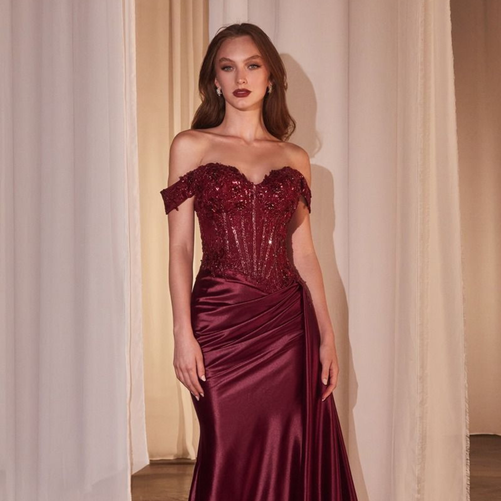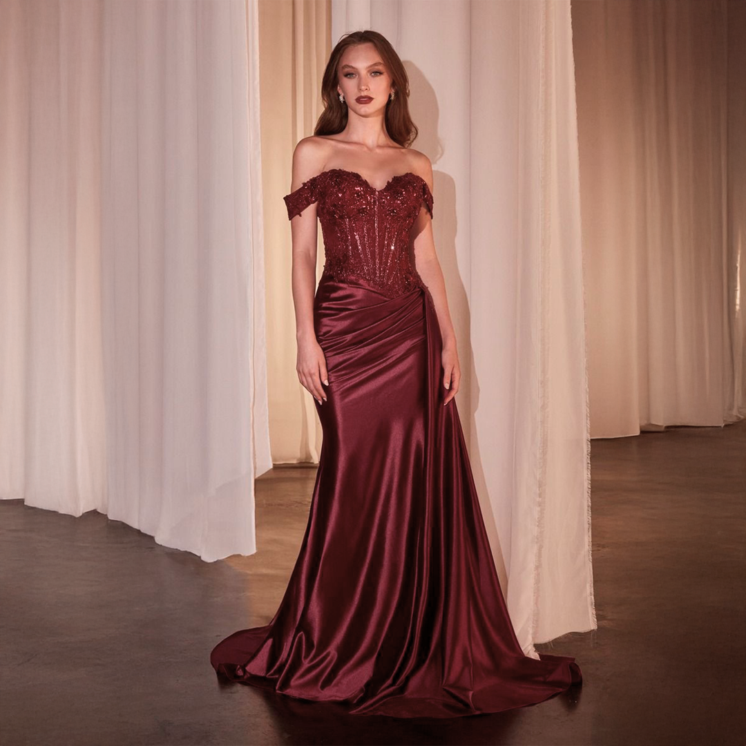 Vestido De Fiesta Corset Satín EC0130 Borgoña