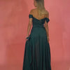 Vestido de fiesta largo verde esmeralda con escote bardot Modelo Cris