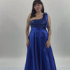 Vestido Largo de Fiesta Isis Azul Royal confeccionado en Satín, con escote asimétrico con detalles en lentejuelas en bustier con falda tipo A.